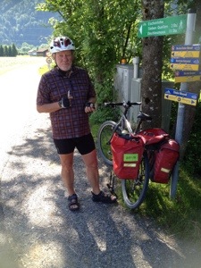 Der Wetterbericht hatte für Pfingsten 30 Grad angekündigt, der Tag wird anstrengend. Mit einer extra Schicht Sonnencreme an den Armen und Beinen startete ich Richtung Murnau. An einer Weggabelung, während einer kleinen Orientierungspause, kam ich mit einem entgegenkommenden Radler ins Gespräch. Offensichtlich erkennen sich bloggende Tourenradler. Ein kurzer Plausch über die gegenseitigen Erlebnisse und Vorhaben, Austausch der Visitenkarten und noch ein Routenvorschlag für mich. Wieder ein Volltreffer, siehe unten.