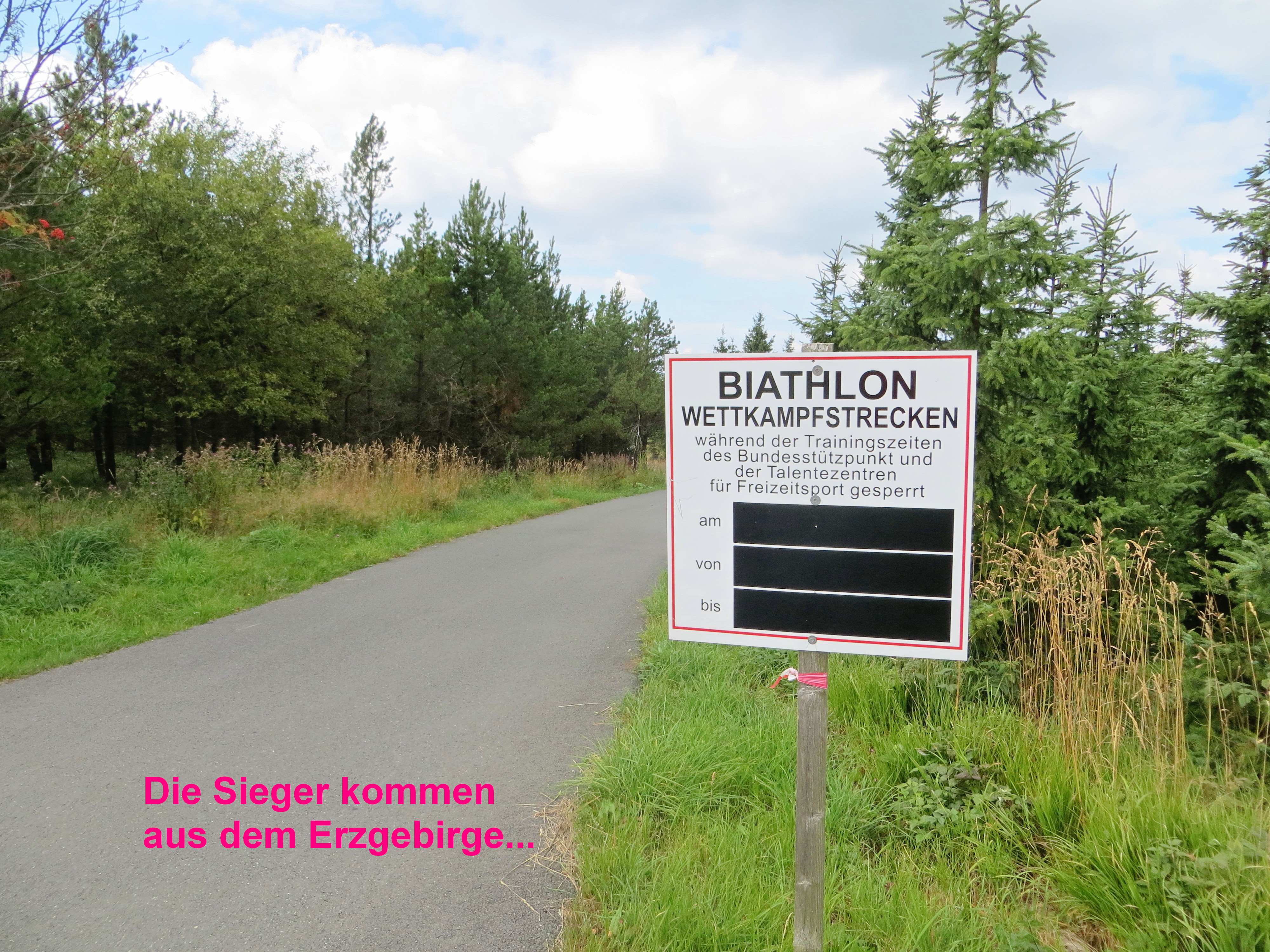 Von Altenberg führte mich mein Navi zunächst nach Zinnwald, direkt in die Loipe der Talentschmiede der Biathleten. Dann immer parallel zur Grenze in Richtung Marienberg. Die Orte wurden immer kleiner, stundenlang begegneten mir keine Menschen in dieser verlassenen Gegend.