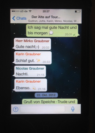 Da fällt mir ein, ich muss mich an dieser Stelle bei allen bedanken, insbesondere bei meiner Familie, die mich unterwegs mit kleinen „whatsapp“ Nachrichten oder sms versorgt haben, das tat gut!