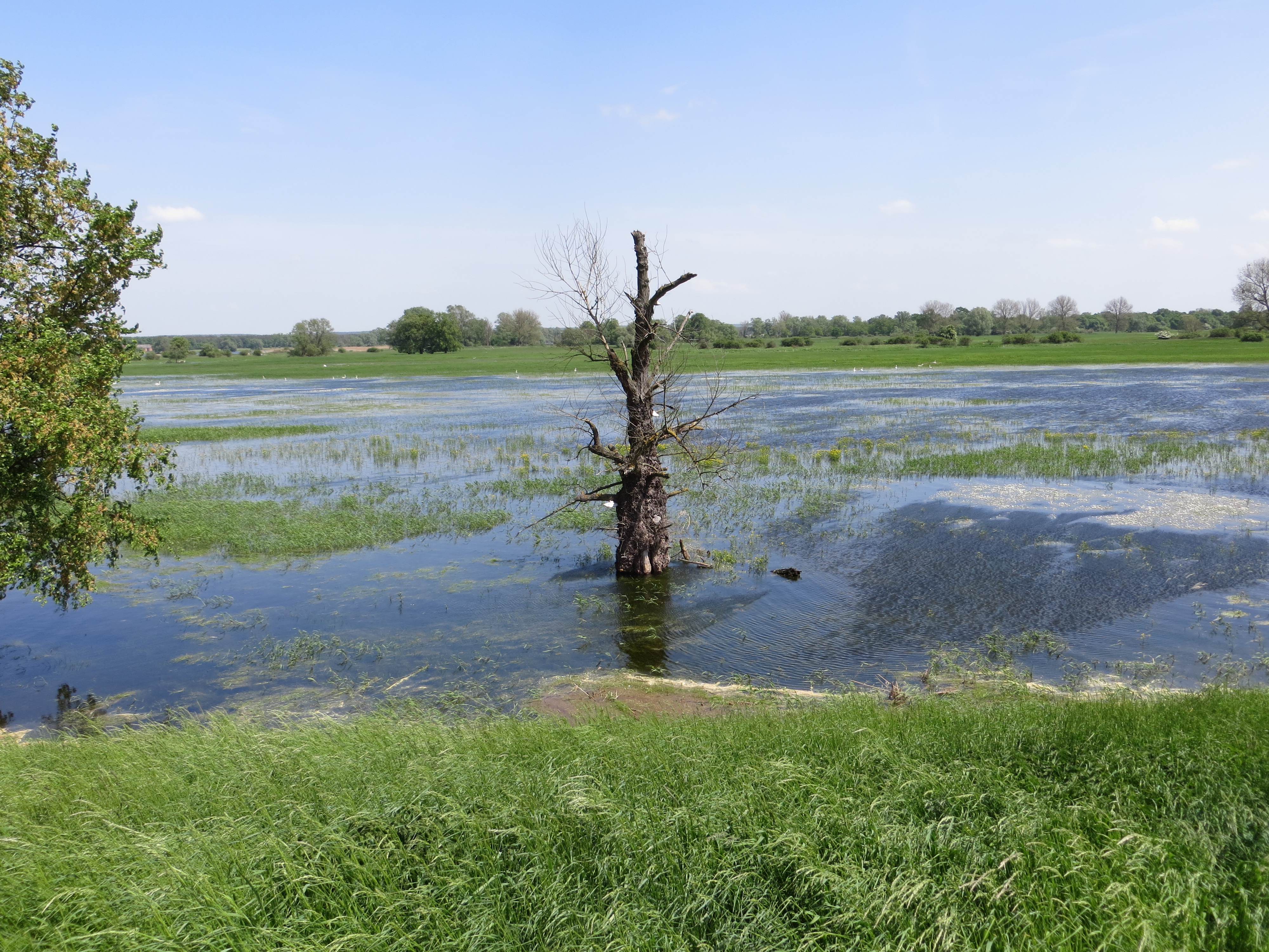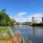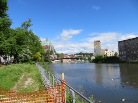 In Ahlbeck bog ich Richtung Süden ab und fuhr parallel zur polnischen Grenze in Richtung Stettiner Haff bis Garz, um dann über Usedom und Karnin (mein Navi kannte die kleine Fähre über den Peenstrom nicht) nach Ueckermünde zu gelangen. Nach einer, immer einsamer werdenden Strecke entlang der polnischen Grenze, erreichte ich am nächsten Tag gegen 17.30 Uhr bei Mescherin die Oder. Die folgenden Tage auf dem Oder/Neiße-Radweg waren ein „Leckerbissen“ auf meiner Tour, wenn nicht sogar die schönste Teilstrecke bisher überhaupt. Rund 400 km teils durch unberührte Natur, einsamen Wegen, mal auf dem Deich, mal durch Feuchtgebiete oder kleinen Wäldern. Durch Städte, wie sie unterschiedlicher nicht sein können. Einerseits die kleine Kurstadt Bad Muskau mit dem Fürst-Pückler Park oder Forst mit dem Rosengarten und andererseits Städte wie Eisenhüttenstadt oder Guben, geprägt vom Industrie und dem Abbau der Braunkohle.