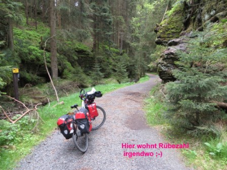 Am 21. Mai, mein vorletzter Tag, hatte ich mir als Ziel Dresden vorgenommen. Von Zittau bis Bad Schandau und den Elberadweg bis Dresden, fast ein Katzensprung. Es kam anders. Ich endschied mich, bei Großschönau eine Abkürzung durch den Naturpark auf der tchechischen Seite zu nehmen. Der Abstecher zu den Nachbarn hat mich etwa 40 km Verlängerung (Fahrrad schieben inclusive) gekostet, aus eigener Dummheit. Das Navi hatte nur Deutschland gespeichert und meine Karte passte so gar nicht in die Ausschilderung der Radwege (sofern überhaupt als solche gekennzeichnet). So kam es, dass ich mir den schönen Ort Krásná Lipa zwei mal ansehen durfte. Mit drei Stunden Verspätung erreichte ich über einen steilen Wanderweg bei Hinterhermsdorf endlich die Landesgrenze zu Sachsen. Die GPS Aufzeichnung zeigt meinen Irrweg.