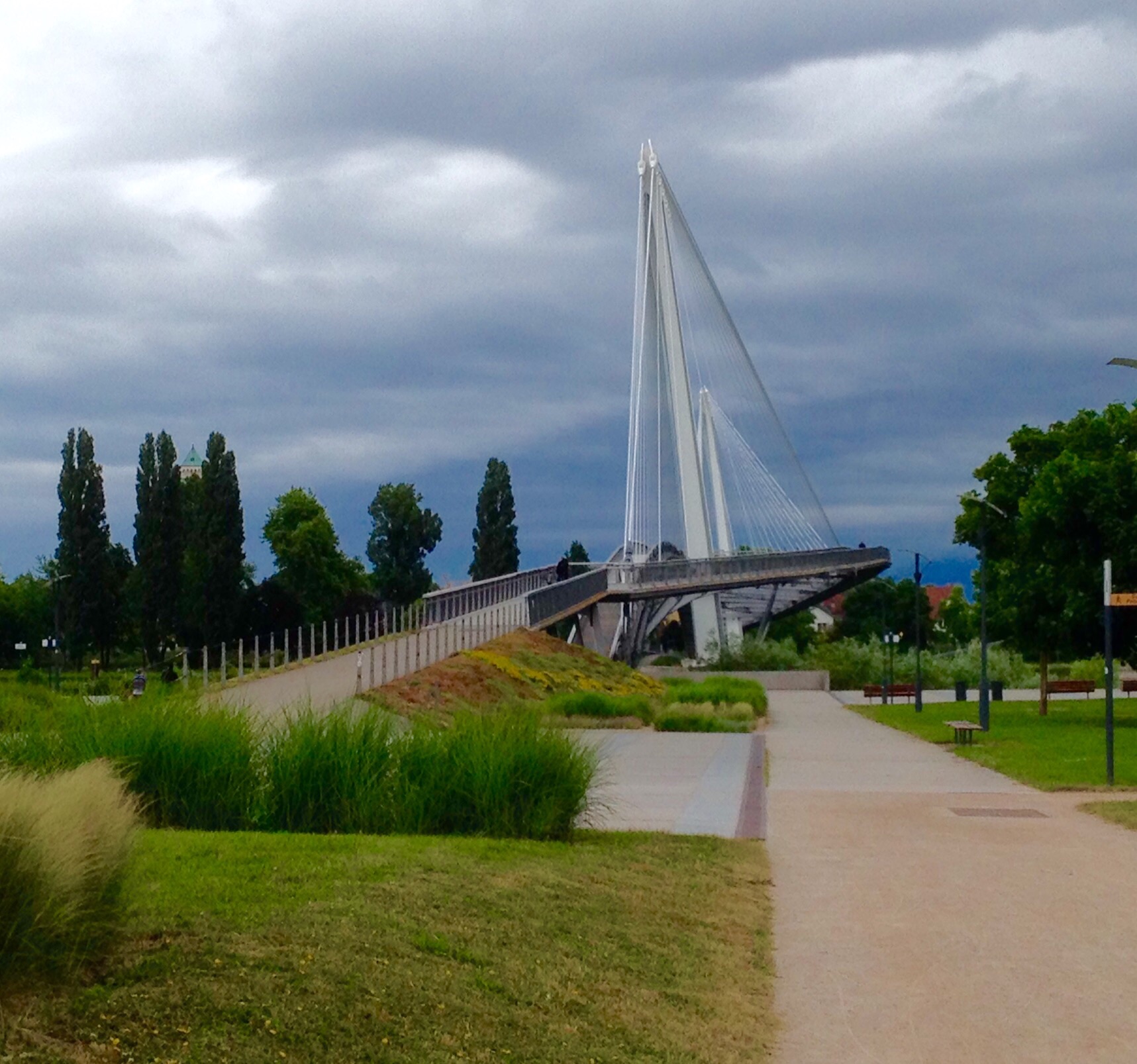 Flüsse“, das Hafengebiet und dann Richtung Zentrum. Das Europaparlament liegt, neben weiteren Glaspalästen der europäischen Staaten, in einem eigenen Stadtteil. Über hübsch oder nicht kann man streiten, auf jeden Fall ist es nicht zu übersehen. Nachdem ich an einer Kreuzung von einem „Kaskopf“ mit Lastenfahrrad auf französisch angesprochen wurde und er mir versicherte, nach einer Flasche Champagner würde man jede Sprache sprechen (kann ich bestätigen! Das Gespräch dauerte etwas länger, die Wiedergabe würde hier den Rahmen sprengen), fand ich mich irgendwann wieder in Kehl am Rhein.