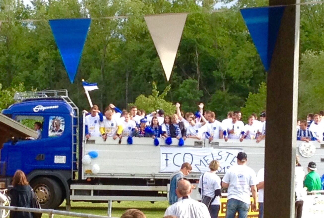 Da ich früh dran war, ging ich, nach der obligatorischen Dusche, zu Fuß (!) zum örtlichen Reit-und-Fahrverein und gönnte mir einen leckeren Straßburger Wurstsalat mit Bier. Warum ich auf dem Rückweg in die Aufstiegsfeier vom FC Ottenheim geraten bin…